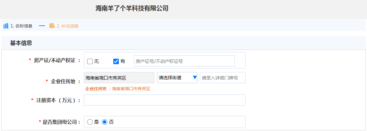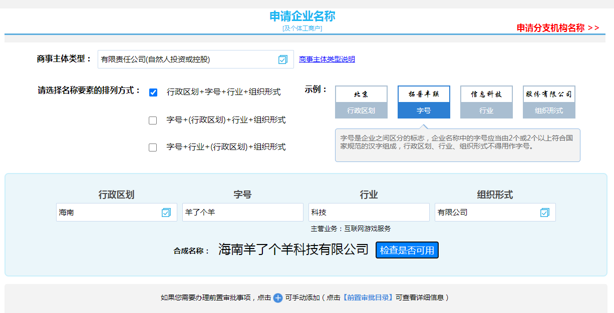 1、先申請企業(yè)名稱,確定羊了個羊這個字號;
