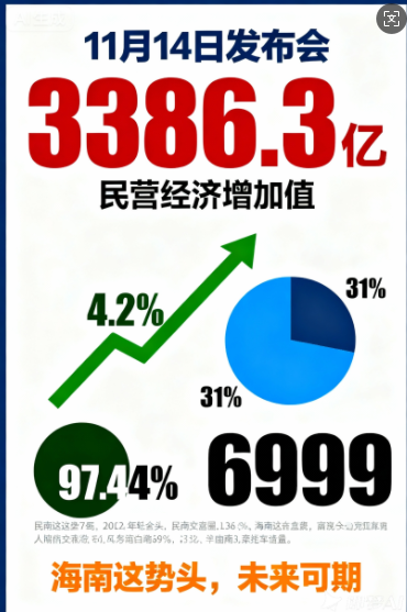會上發(fā)布的一系列核心數(shù)據(jù)顯示,2025年以來,海南民營經(jīng)濟(jì)持續(xù)保持穩(wěn)健增長態(tài)勢,在經(jīng)濟(jì)總量貢獻(xiàn)、就業(yè)保障、創(chuàng)新驅(qū)動等關(guān)鍵領(lǐng)域表現(xiàn)突出,已成為自貿(mào)港建設(shè)的生力軍和培育新質(zhì)生產(chǎn)力的重要力量。